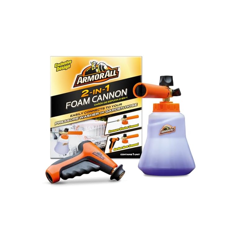 Armor All 2-in-1 Foam Cannon Kit, Car Cleaning Kit Connects to Power Washers and Garden Hoses for Vehicle Cleaning, Includes Foam Cannon, Foam Applicator and Ergonomic Adaptor, 1 count