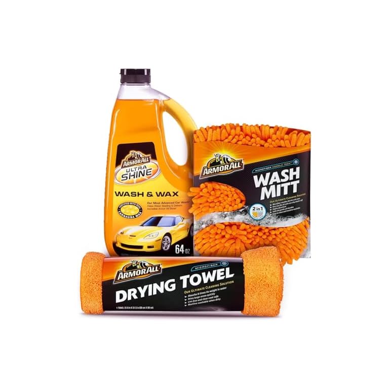Armor All Car Wash Kit, Includes Car Wash Soap, Wash Mitt & Microfiber Towel (3 Piece Kit)