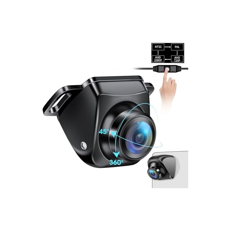 AHD 1080P Backup Camera 360°Rotatable Back up Camera for Cars Reverse Camera for Truck Super Night Vision IP69K Waterproof Rear/Front/Side View Camera w 170° Wide Angle Reverse Line, No Drilling