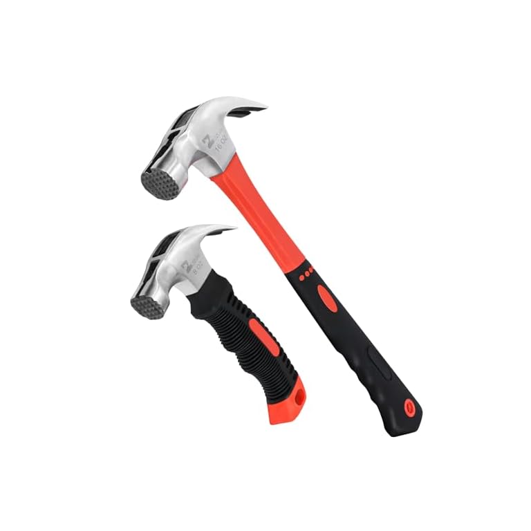 WORKPRO 2-Piece Claw Hammer Set, 8 oz Mini Stubby & 16 oz Fiberglass General Purpose, Soft Nonslip Handle & Heat Treated Head