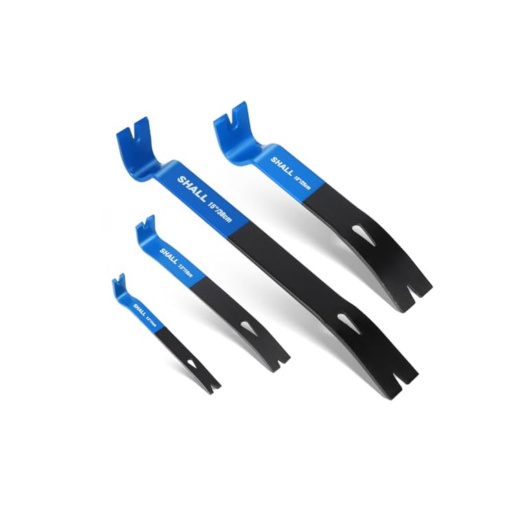 SHALL 4-Piece Flat Pry Bar Set -15″ 10″ 7.5″ 5.5″- Heavy Duty & Mini Nail Puller Crowbar, Utility Claw Bar, Wonder Bar, High-Carbon Steel Flat Bar Tool for Home Remolding & Woodworking