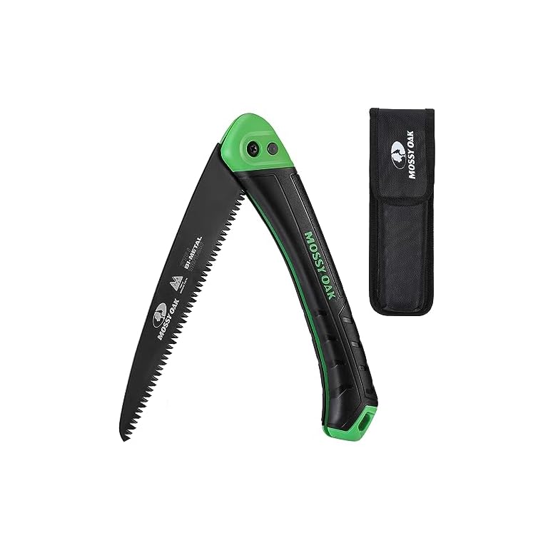 MOSSY OAK Folding Saw – 7 Inch Pruning Hand Saw with Pouch, D6A & M2 Bimetal Saw Blade, Hunting Saw Foldable for Deer, Tree, Wood, and Limb Cutting
