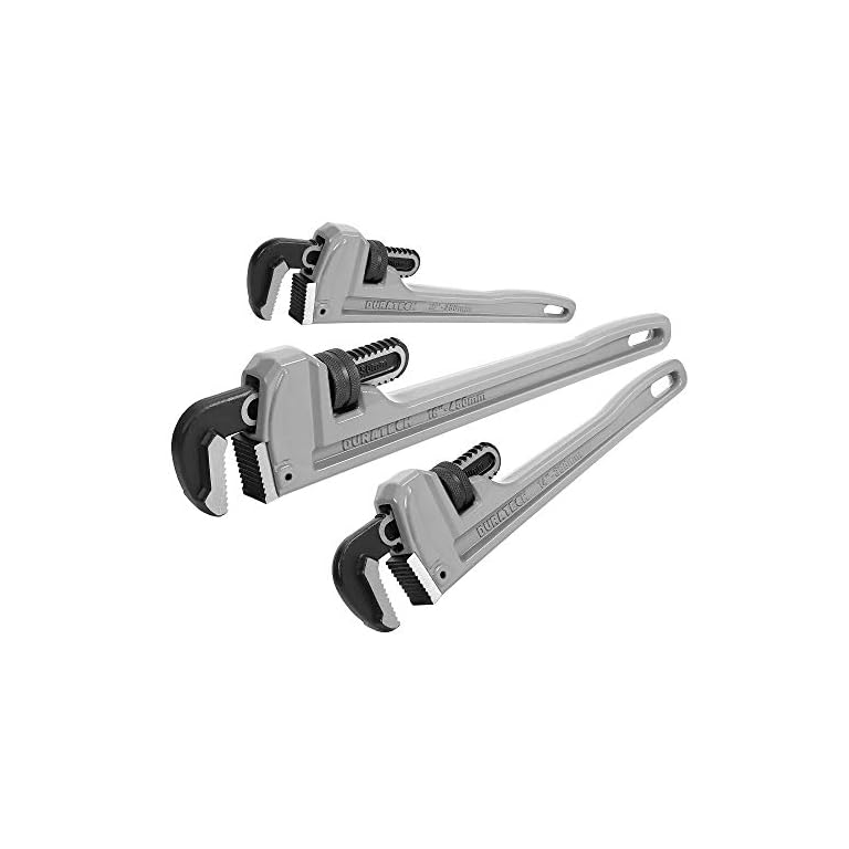 DURATECH 3-Piece Heavy Duty Aluminum Straight Pipe Wrench Set, 10″, 14″, 18″, Adjustable Plumbing Wrench Set, Drop Forged, Exceed GGG standard