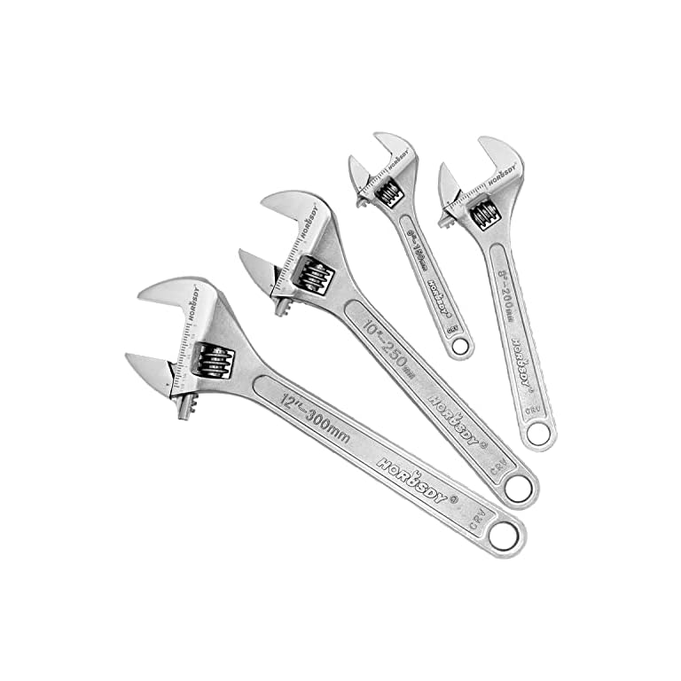 SHALL 3-Piece Adjustable Wrench Set, 10/8/6 Inch Cr-V Steel Wrench with Cushion Grip, Wide Jaw Black Oxide Wrench with Laser-etched SAE Scales for Home, Garage, Workshop and DIY