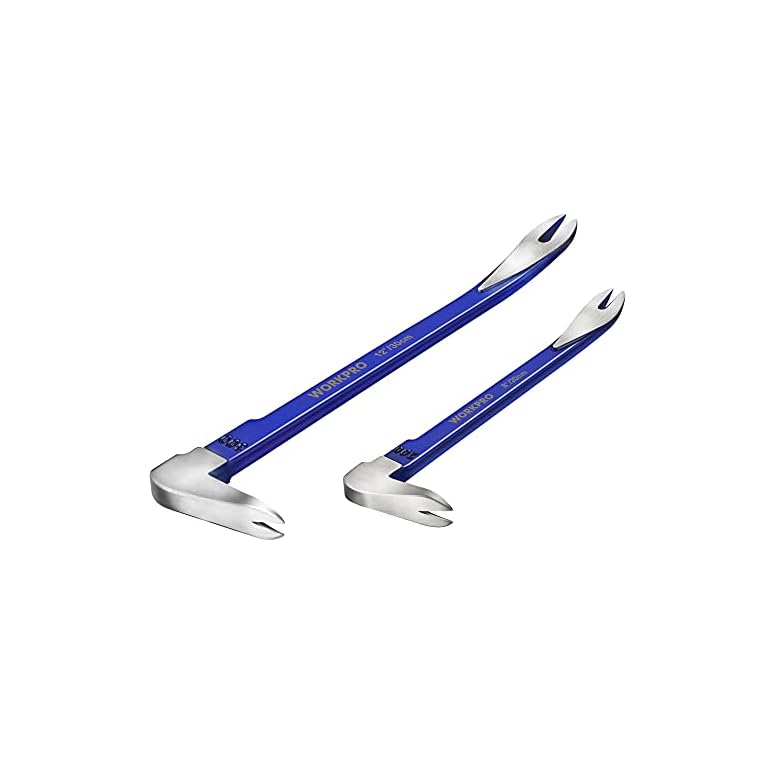 WORKPRO 2-Piece Nail Puller Set, 12” Pry Bar, 8” Mini Crowbar, Cats Paw Nail Remover, Claw Bar, for Kitchen Remodel, Prying Apart Baseboard, Multi-sided Forged Steel Made