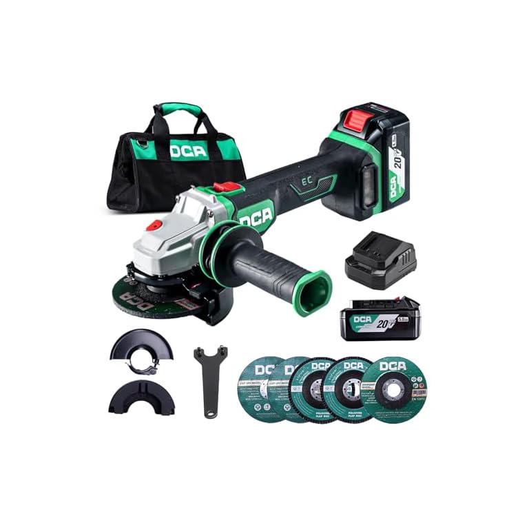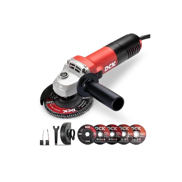 DCK Angle Grinder, 4-1/2-Inch, 6.7Amp Cut off Tool Grinder, 11,800 RPM with 2 Safety Guards, 6-Piece Discs (2 Cutting/2 Grinding/2 Flap Discs), Professional Angle Grinder for Metal, Wood (KSM09-115S)