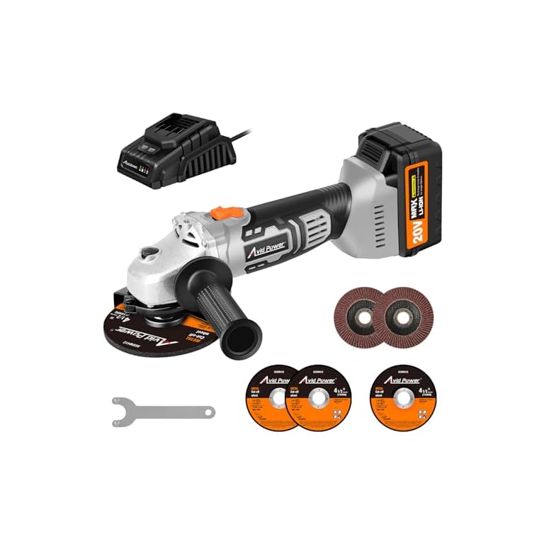 AVID POWER Cordless Angle Grinder with 4-pole Motor, 20V Cordless Grinders Tools w/3.0A Battery & Fast Charger, 4-1/2 Inch Grinding Wheels, Cutting Wheels, Flap Discs and Auxiliary Handle – Grey
