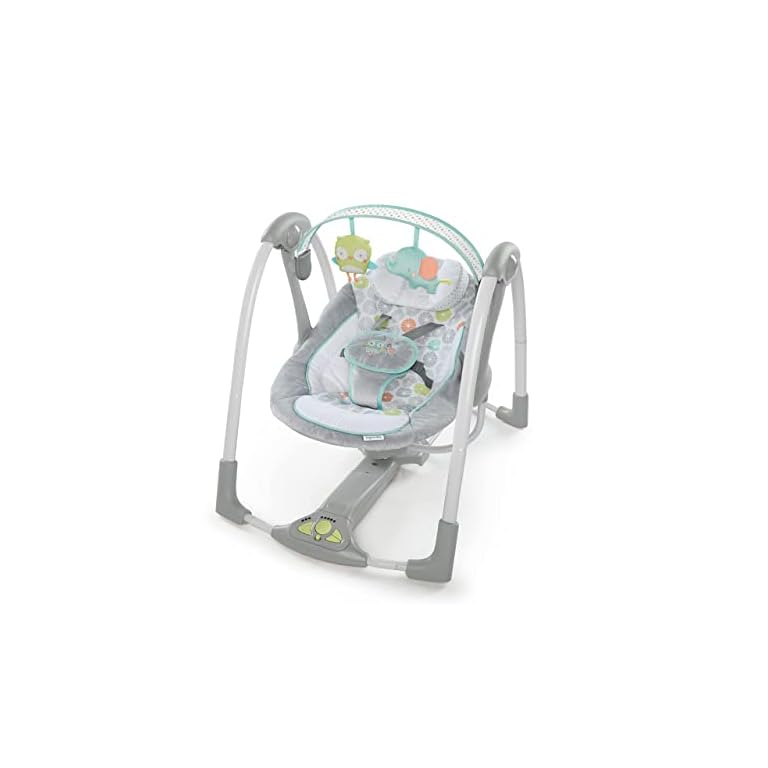 Ingenuity Swing ‘n Go 5-Speed Baby Swing – Foldable, Portable, 2 Plush Toys & Sounds, 0-9 Months 6-20 lbs (Hugs & Hoots)