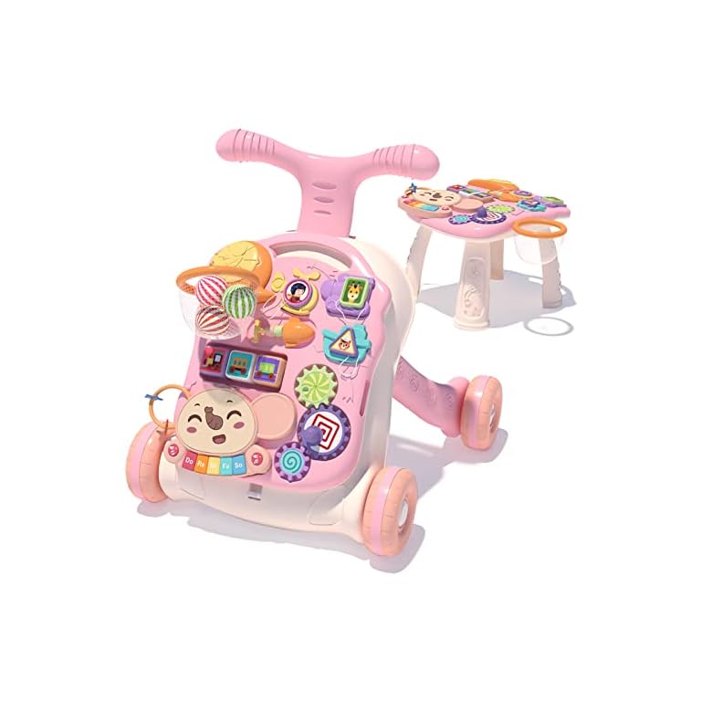 QDRAGON 3 in 1 Baby Walker and Activity Center for Girl, Learning to Walk, Sit to Stand, Early Educational Push Toys with Music Panel for Infant Toddler 12+ Months Pink