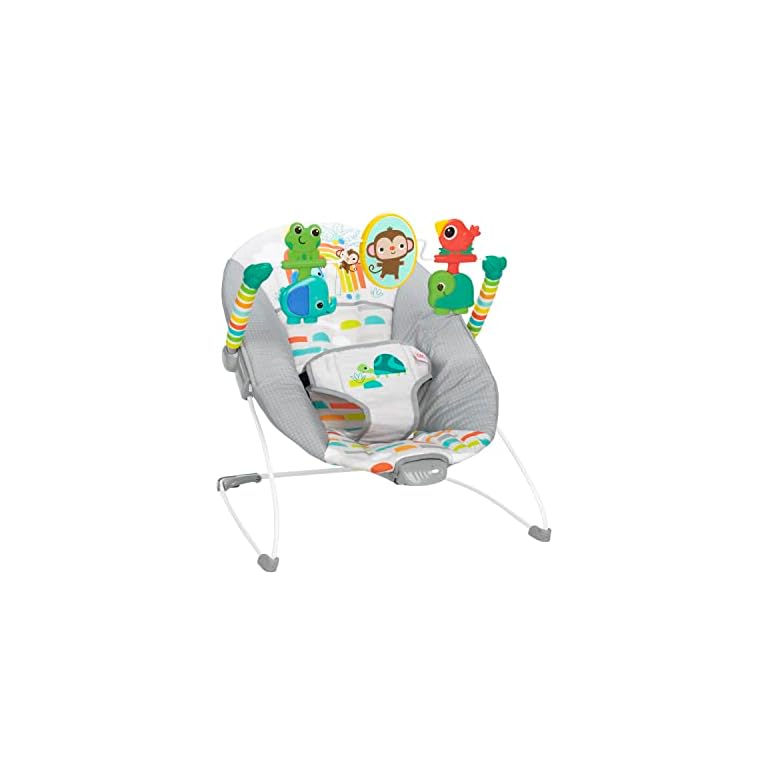 Bright Starts Playful Paradise Comfy Baby Bouncer Seat with Soothing Vibration and Toys, Unisex, 0-6 Months