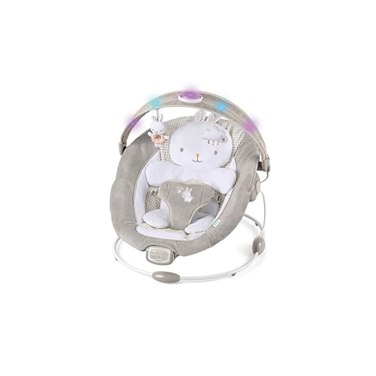 Ingenuity InLighten Baby Bouncer Infant Seat with Light Up -Toy Bar, Vibrations, Tummy Time Pillow & Sounds, 0-6 Months Up to 20 lbs (Twinkle Tails Bunny)