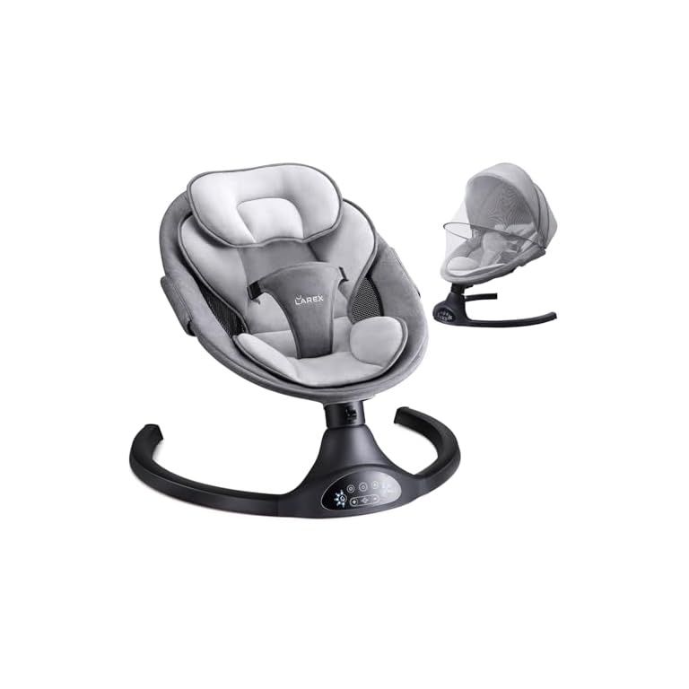 LAREX Baby Swing Infant Swing Electric Toddler Baby Rocker Portable for Newborn Boy Girl, 5 Sway Speeds with Remote Control, 10 Preset Melodies and Bluetooth, 0-6 Months Max 20 Lbs (Black)