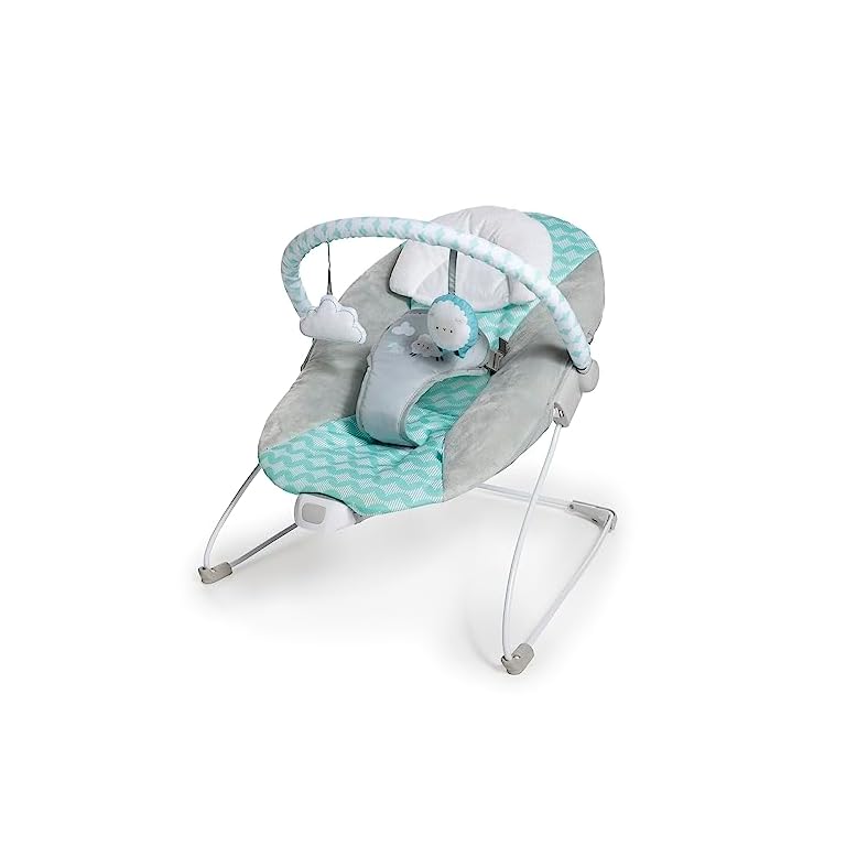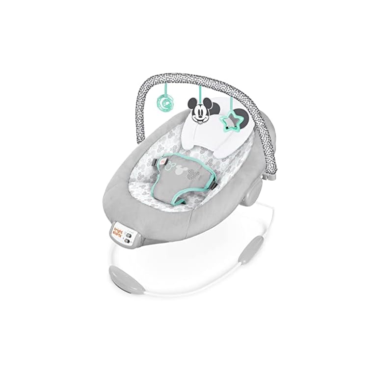 Bright Starts Mickey Mouse Comfy Disney Baby Bouncer in Cloudscapes Includes -Toy Bar with 3 Cute Toys, Plays 7 Soothing Melodies w/Auto Shut-Off, Age 0-6 Months