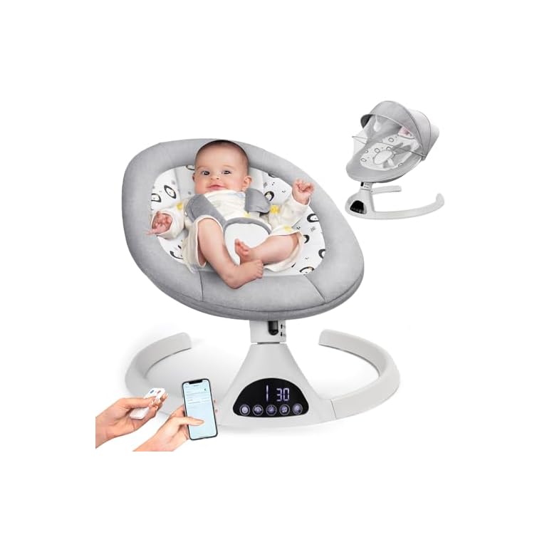 Electric Baby Swing for Infants to Toddler Portable Babies Swings Timing Function 5 Swing Speeds Bluetooth Touch Screen Music Speaker with 10 Preset Lullabies 5-Point Carabiner Gray