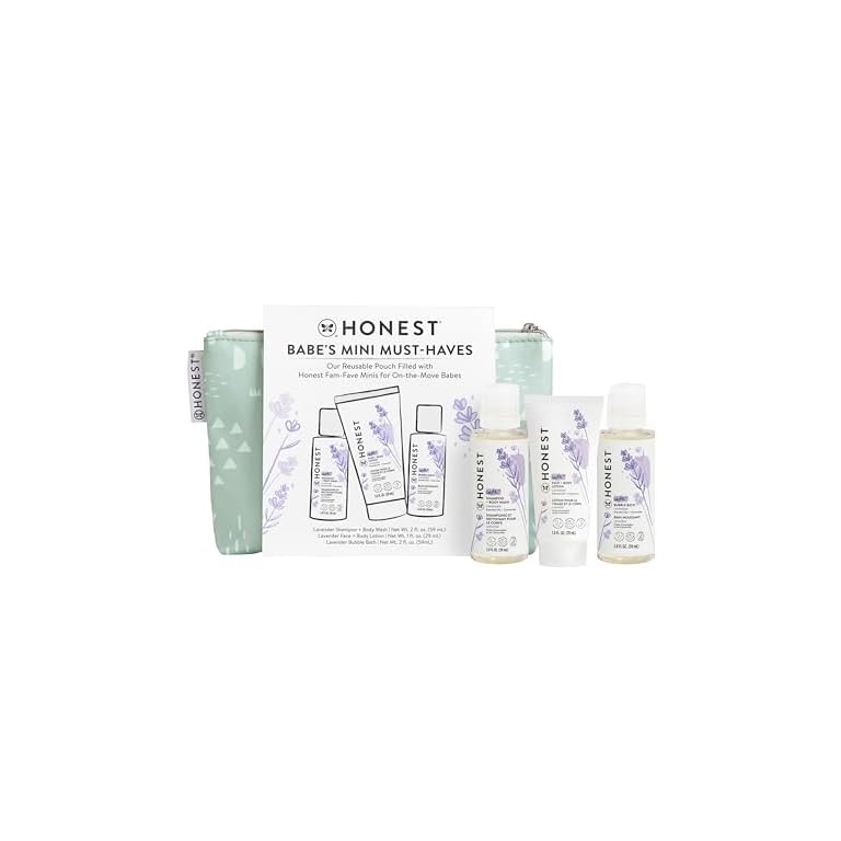 The Honest Company Babe’s Mini Must Haves Gift Set | Travel Size Hypoallergenic Lavender Bathtime Essentials | Shampoo + Body Wash (2 fl oz), Face + Body Lotion (1 fl oz), Bubble Bath (2 fl oz)