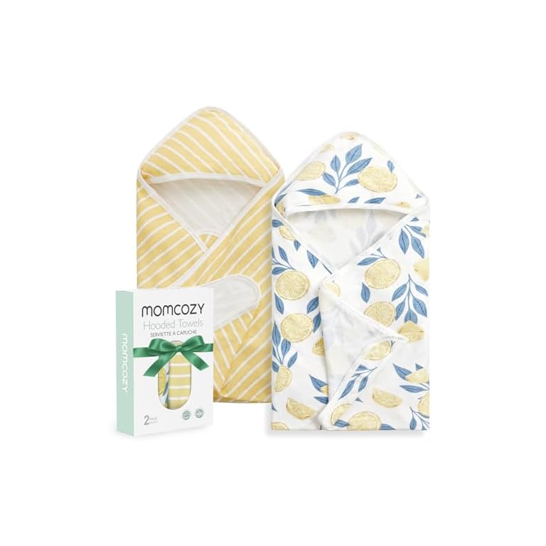 Momcozy Cute Elephant Hooded Baby Towel- 8 Piece Bath Essential, 2 x Towels and 6 x Wash Cloth Set- Perfect Shower Gift for Boys or Girls – Soft and Comfort for Newborn, Infant and Toddler