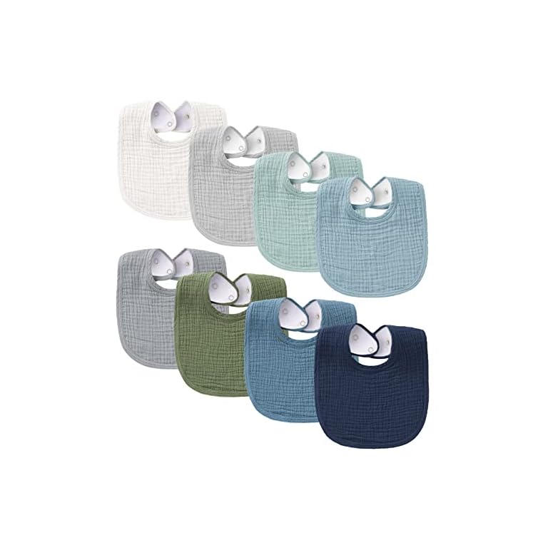 Konssy Muslin Baby Bibs 8 Pack Baby Bandana Drool Bibs Cotton for Unisex Boys Girls, 8 Solid Colors Set for Teething Drooling