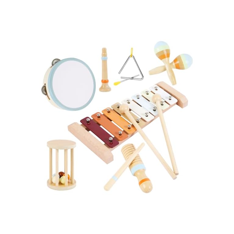 Baby Musical Instruments Set Wooden Montessori Toys for Toddlers 1-3 Percussion Instruments Set Modern Boho Music Toys for Kids Preschool Educational.