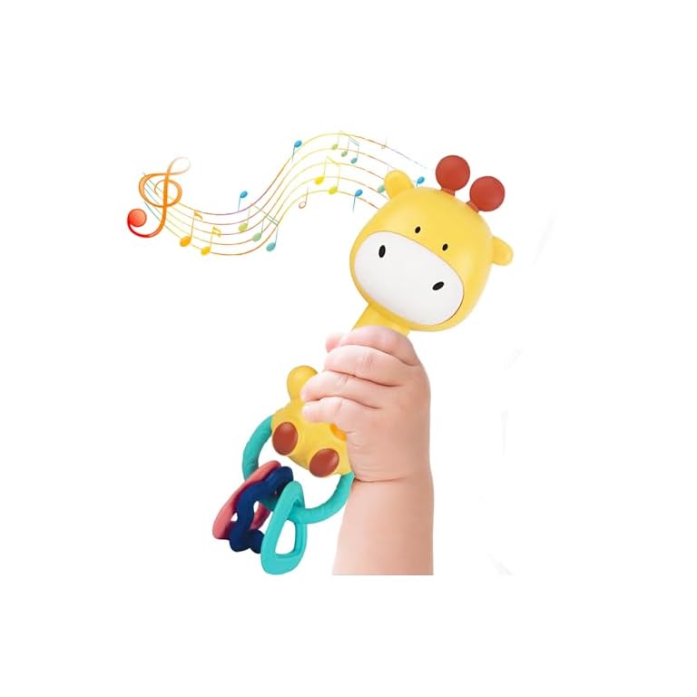 Baby Rattle Musical Toy, Light-Up Teething & Chew Sensory, Easter Basket Stuffer for Babies 6-12-18 Months, BPA-Free Soft Rubber & ABS, Easter Toy Gift for 1+ Year Old Boy & Girl (Giraffe)