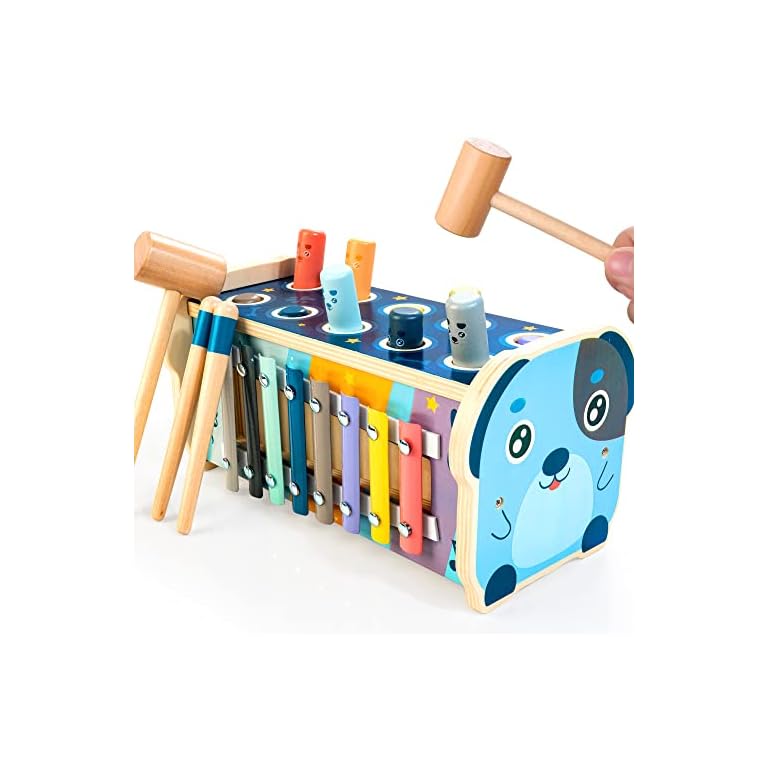 KIDWILL Wooden Hammering Pounding Toy for 12+ Months Kids, Montessori Toys for 1+ Year Old Babies, Early Development Toy with Pounding Bench, Xylophone, Number Sorting Maze, Gifts for Toddlers Age 1-2