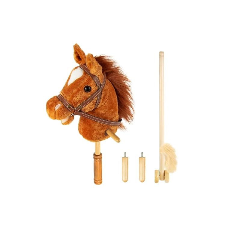 Stick Hobby Horse Riding Toy, Plush Stick Horse for Toddlers Ages 3+, Horses Ride on Toy Fun Pretend Play with Wooden Wheels and Real Pony Clip-Clop Sounds 39 Inches-Light Brown