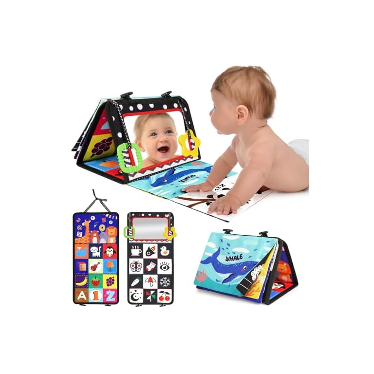 URMYWO Tummy Time Toy – Black and White High Contrast Baby Toys for Newborn – Baby Visual Stimulation Mirror – Montessori Sensory Crinkle Toy for Infant 0-3-6-12 Months – Easter Basket Stuffers Gift