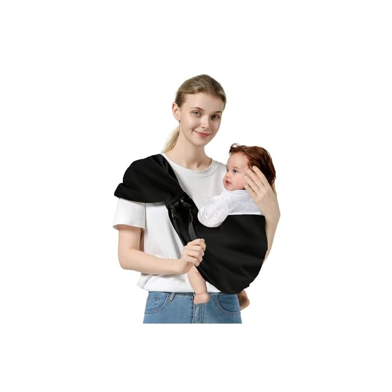 Baby Sling Carrier, Toddler Carrier Sling with Double Safety Buckle and Adjustable Shoulder Strap, Baby Carrier One Size Fits All, Black