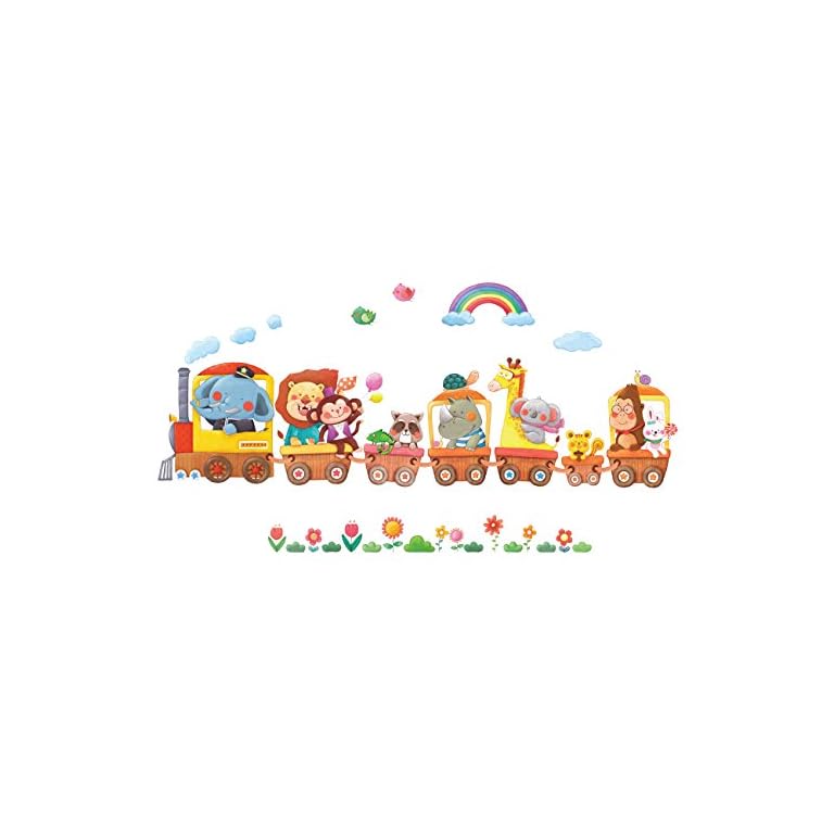 DECOWALL DS4-8024 Animal Trains Kids Wall Stickers Wall Decals Peel and Stick Removable Wall Stickers for Kids Nursery Bedroom Living Room (Small) d?cor