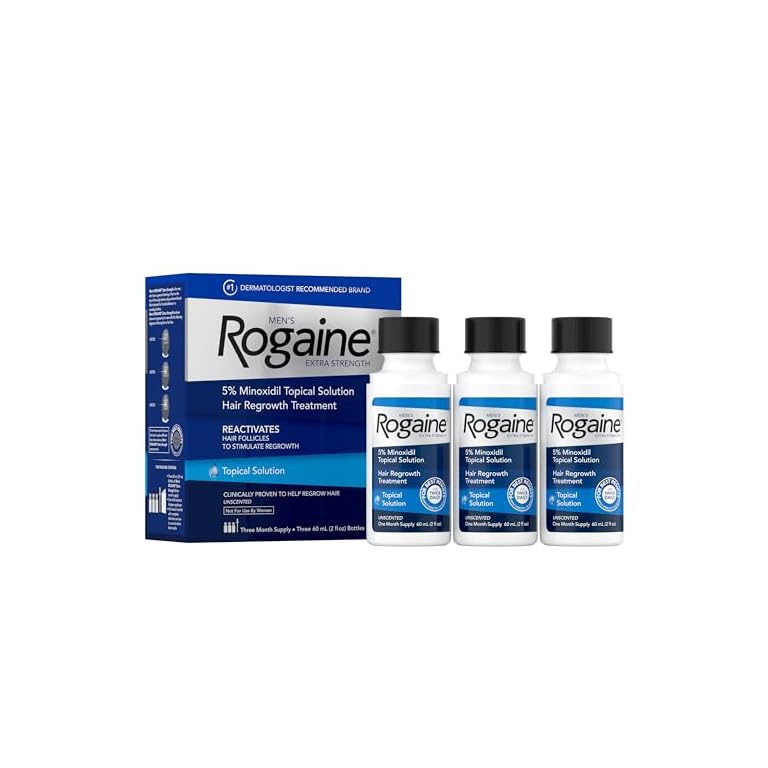 Men’s Rogaine Extra Strength 5% Minoxidil Topical Solution for Thin Hair, Hair Loss Treatment to Regrow Fuller, Thicker Hair, 3 Month Supply, 3 Bottles