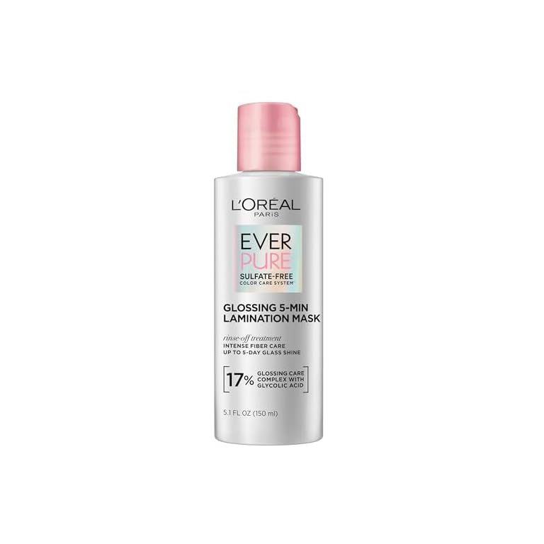 L’Oreal Paris Glossing Lamination Hair Mask with Glycolic Acid, Hair Treatment for Lasting Shine and Smoothness for Dull, Dry Hair, EverPure, 5.1 Fl Oz