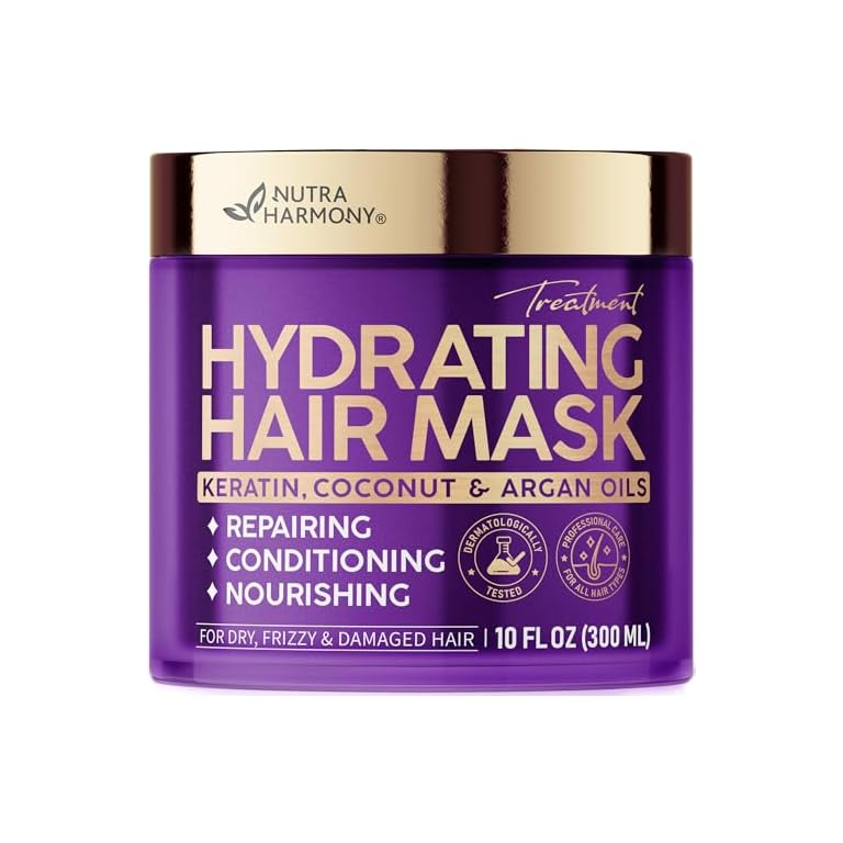 Hydrating Hair Mask – For Dry Damaged Hair – Moisturizing Keratin Treatment – Argan & Coconut Oil | Biotin | Collagen – Deep Conditioning, Anti Frizz Product for Women – Care for All HairTypes, 10 Oz