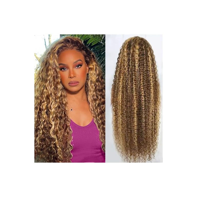 abbildung 30inch Highlight Ombre Lace Front Wig Human Hair 13×6 HD Honey Blonde 4/27 Deep Wave Lace Frontal Wigs Glueless Wigs Human Hair Pre Plucked with Baby Hair 200 Density
