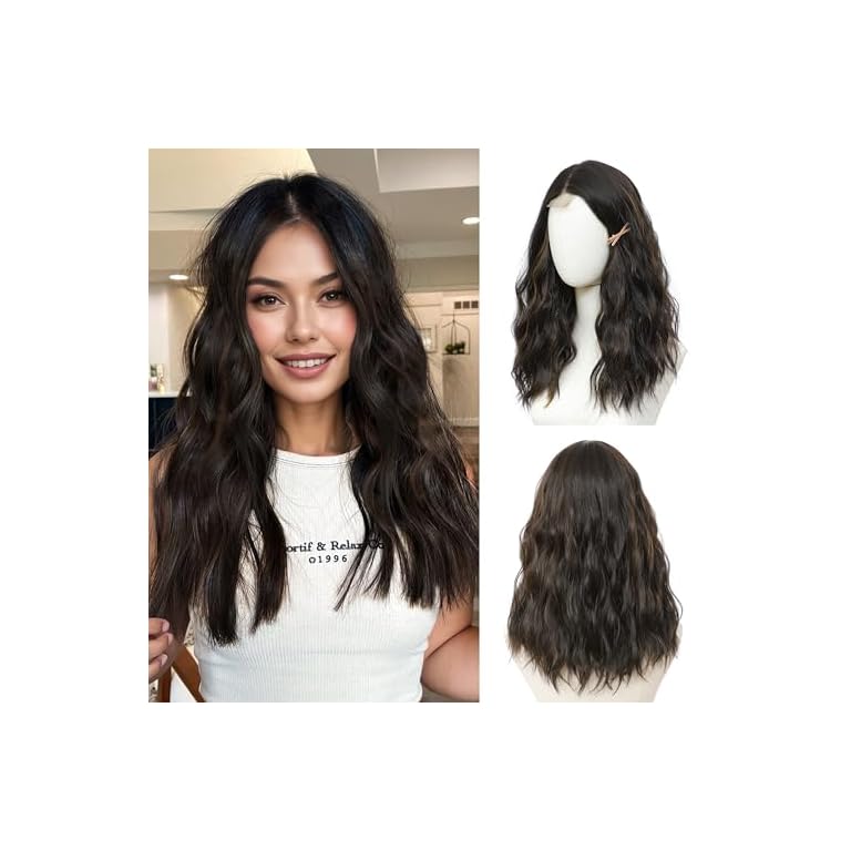Dark Brown Wig 18 Inch Medium Length Wigs for Women Middle Part Synthetic Hair Wavy Wig with Upgraded Strands,Natural Hair Wigss for Daily Party/Halloween Use 18Inch,Dark Brown Highlight 6/30