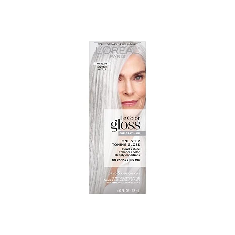 L’Oreal Paris Le Color Gloss One Step Toning Gloss, In-Shower Hair Toner with Deep Conditioning Treatment Formula for Gray Hair, Silver White, 1 Kit