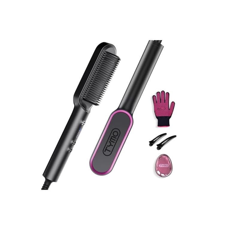 Hair Straightener Brush, TYMO Ring Hair Straightener Comb Straightening Brush for Women with 5 Temps 20s Fast Heating & Dual Voltage, Black