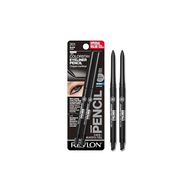 Revlon ColorStay Pencil Waterproof Eyeliner, Smudge-Proof, Eye Makeup with Built-In Sharpener, Packaging May Vary, 201 Black, 2 pack