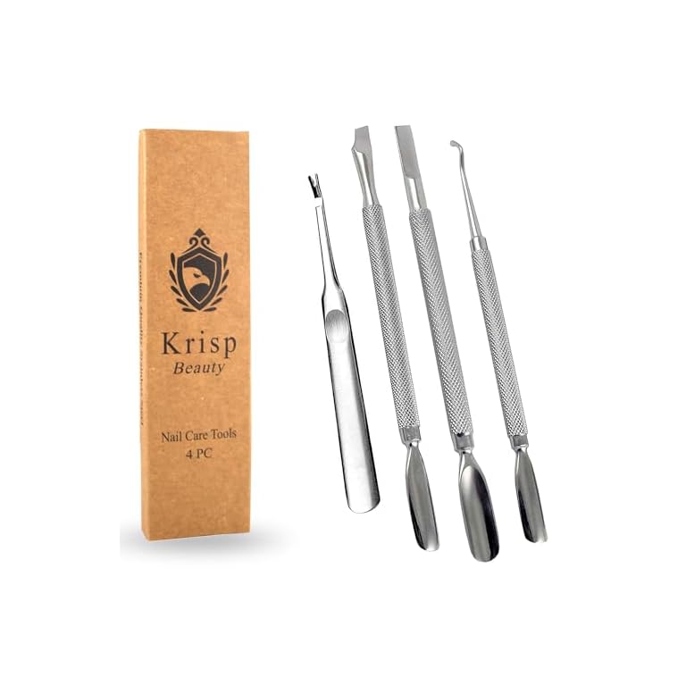 Cuticle Pusher Tools – Professional Nail Cuticle Pusher Cuticle Remover Cuticle Trimmer Ingrown Toenail Lifter Nail Cleaner Dual Sided Stainless Steel Manicure Pedicure Women 4 Pack Set Krisp Beauty