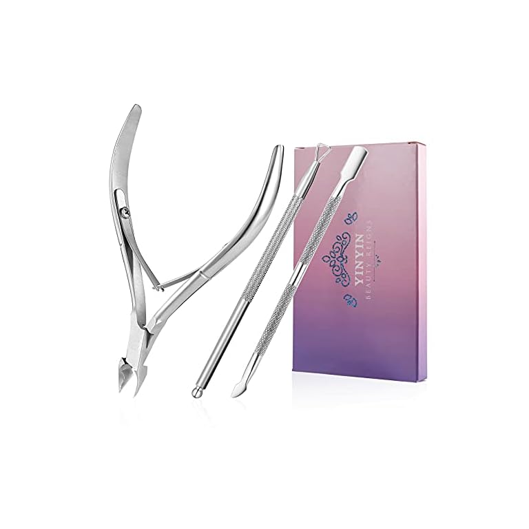 Cuticle Trimmer with Cuticle Pusher and Cutter-YINYIN Cuticle Remover Nippers Professional Stainless Steel Cutter Clippers,Pedicure Manicure Tools for Fingernails Toenails(Silver)