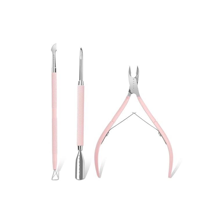 Makartt Cuticle Trimmer with Cuticle Pusher, 3 PCS Pink Nail Cuticle Nipper Professional Pedicure Manicure Tools with Stainless Steel Dual End Pusher, Nail Scraper