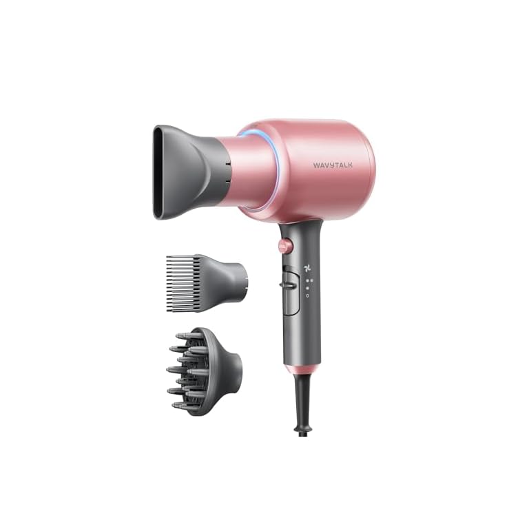 Wavytalk Hair Dryer, Blown Away Ionic Hair Dryer for Curly Hair with Diffuser, 1875W Fast Drying Blow Dryer with Ceramic Technology, 3 Attachments for All Hair Types, Light and Quiet, Rose Gold