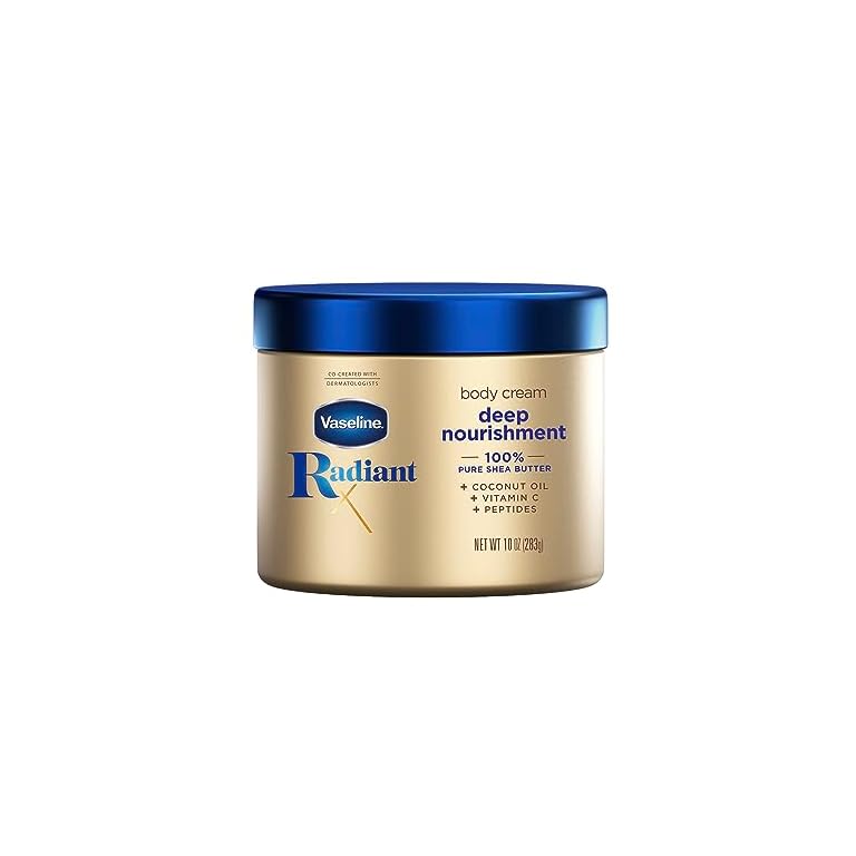 Vaseline Radiant X Deep Nourishment Body Cream 100% Pure Shea Butter, Coconut Oil, Vitamin C, & Peptides 10 oz