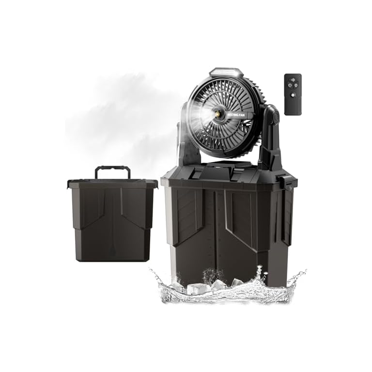 Misting Fan, 6L Bucket Portable Misting Fans with Remote, 20000mAh Rechargeable Battery Portable Fan for Outdoors Patios, Camping Fans 270° Adjustable, Hanging & Lighting for Outdoor Cooling