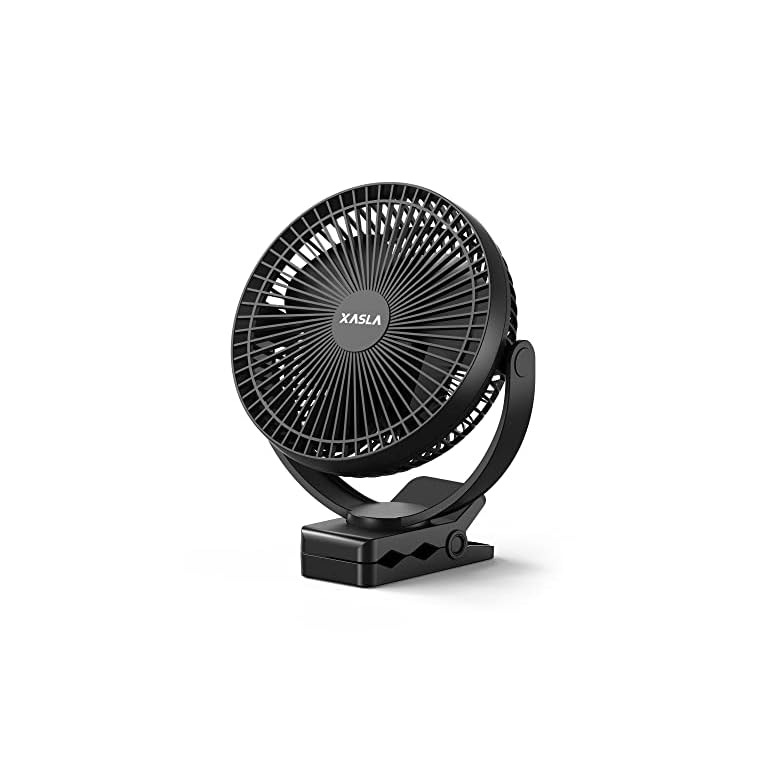 Portable Clip on Fan 65 Working Hours, Camping Fan with LED Lights & Hook, 12000 Capacity Battery Operated Fan with Clamp, USB Rechargeable for Desk, Tent, Treadmill, Stroller, Golf Cart, Home