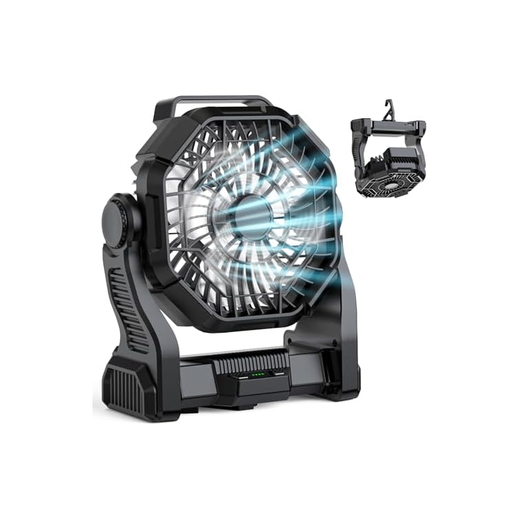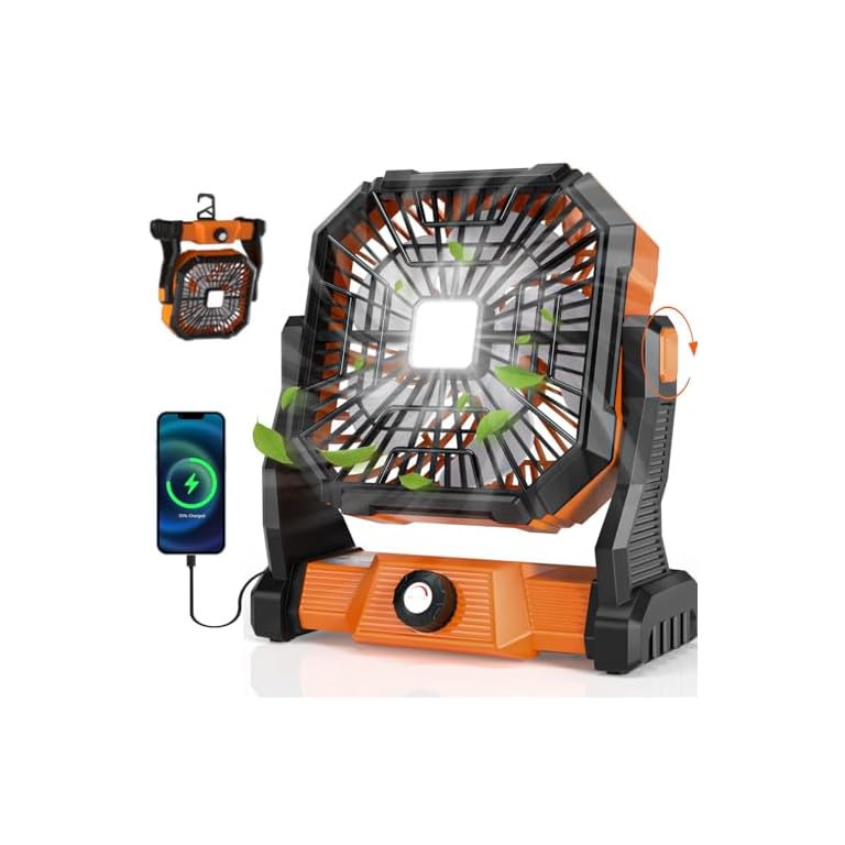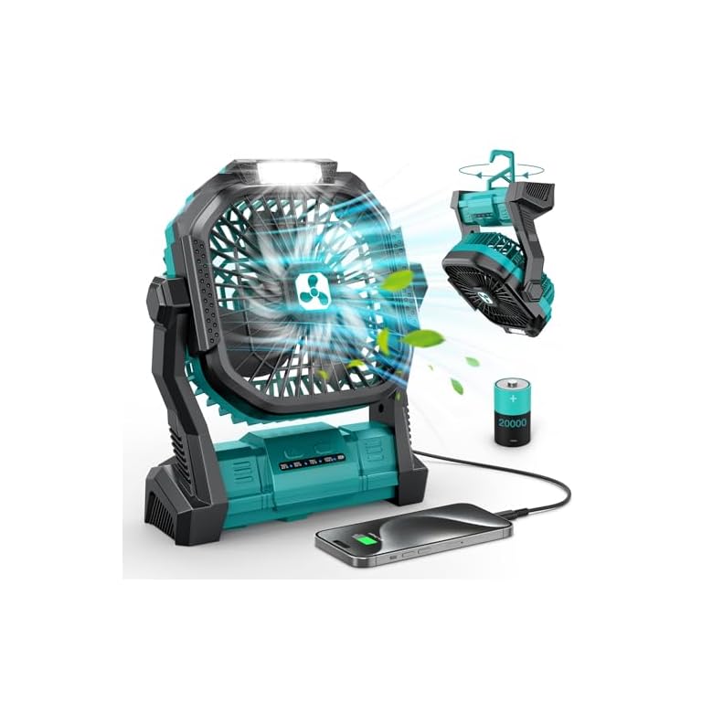 Portable Camping Fan with 20000mAh Rechargeable Battery, USB-C Battery Powered Fan for Indoor Outdoor Use, Ultra Quiet Battery Operated Fan for Travel, Tent, Beach, Picnic, BBQ, Desk, Home