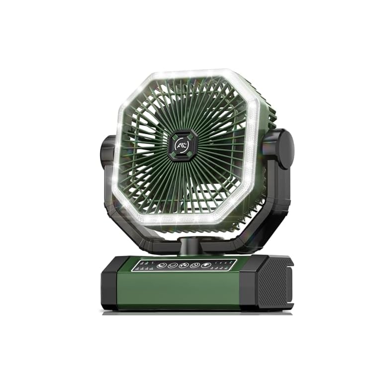 Portable Camping Fan, 20000mAh Rechargeable Battery Operated Fans with Lights, Outdoor Beach Tent Fan, 4 Speed, Adjustable Brightness for Picnic, Barbecue, Fishing, Office, Home