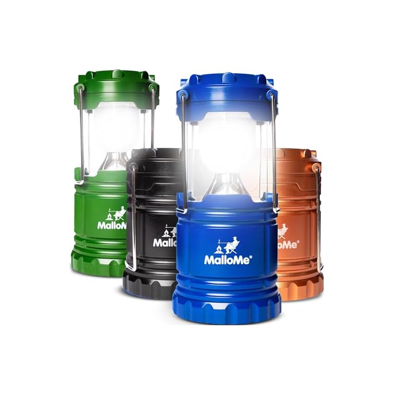 MalloMe Camping Lantern Multicolor 4 Pack Lanterns for Power Outages, Camping Lights for Tent Hanging, Camp Light Tent Lamp Emergency Battery Powered LED Lantern (Rechargeable Batteries Not Included)