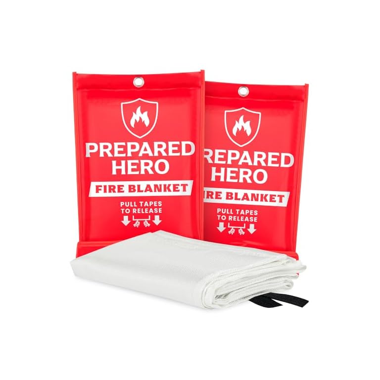 SecuCaptain Emergency Fire Blanket for Home and Kitchen – 2 Pack 40″x40″ Flame Suppression Fiberglass Fire Blankets for House Camping Car Office Warehouse Emergency Survival Safety