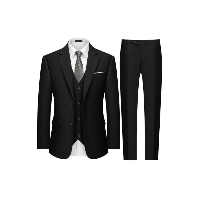 MAGE MALE Mens Suits Slim Fit 3 Piece Tuxedo Suit One Button Solid Prom Wedding Party Blazer Vest Pants Set with Tie
