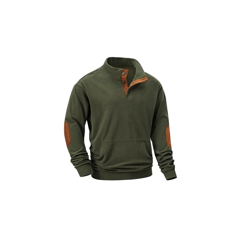 JMIERR Men’s Corduroy Sweatshirt Casual Long Sleeve Stand Collar Button Pullover Sweatshirts with Pockets