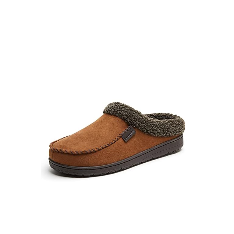 Mens Two-Tone Scuff Slippers with Memory Foam Cozy Warm Slip On House Shoes for Indoor Outdoor Gifts for Men Him Dad